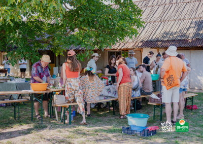 1. Építő tábor: logisztikai elemek építése, amire szükség van pl. komposzt wc-k a fesztiválportákra, jurtasátor, tárolók, raklap bútorok, árnyékolók, sörkollektor (aszaló) építés, kísérletezés vályogból